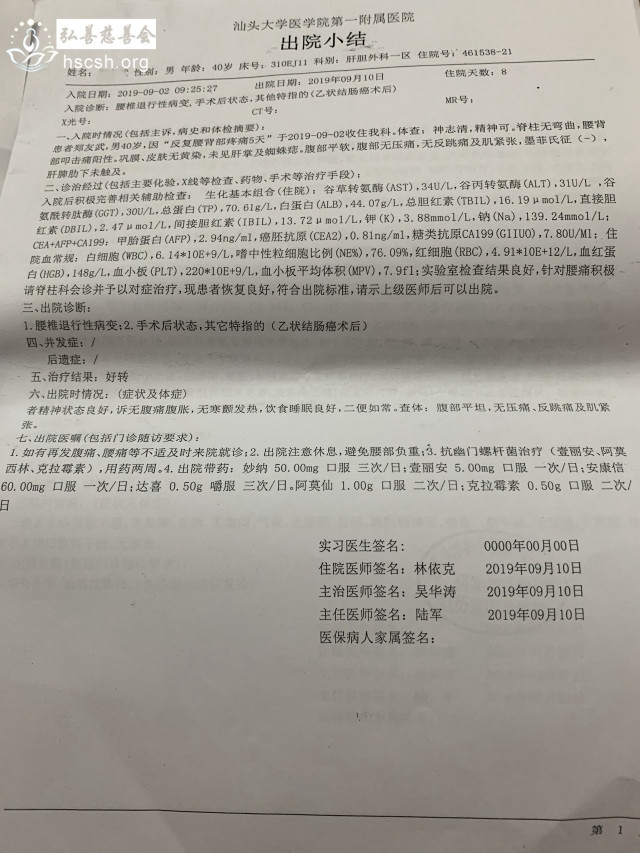 郑某武、男、42岁、2018年检查出患有乙状结肠癌,随后在2019年手术并进行化疗,现每日需服药来维持病情。每月需花药费1000多元。