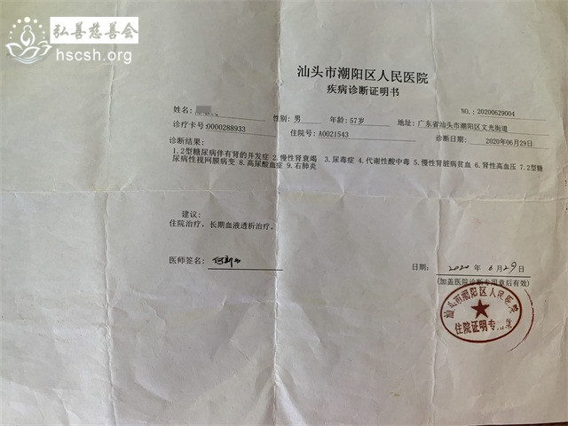 备注:该家庭没有享受低保政策,目前透析靠少许积蓄来维持,家庭来源靠黄宋某做点手工,两个孩子都很懂事,半工半读。