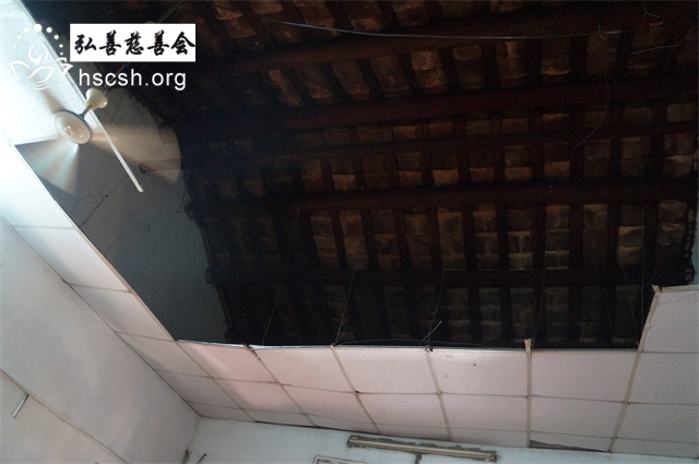 已经脱落了一部分的吊顶,十分危险