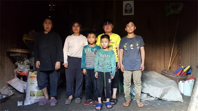 补充:因当地重男轻女的观念严重,妻子在生了四个女孩后,在1998年娶了第二任妻子,生一女四男。丈夫去世时,最小的孩子还未出生;现在家中基本没有劳动力,唯一能务农的是智障的第二任妻子罗某谢,早些年秦某芬还能带着她教她种地,现在因身体状况太差,已经没办法;没有经济收入,唯一的生活经费来源是低保户,每月补助500元;家中负债3万多,用于医病;房子属旧木房,漏风漏雨,非常老旧,唯一的电器是一个电灯;
