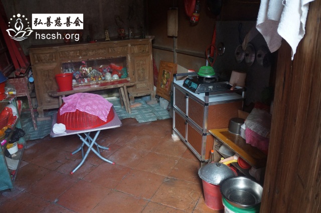 老人膝下有2儿2女。两儿子靠做泥工营生维持各自家庭,大儿子在万福桥附近跟妻姐借房子住。小儿子则与媳妇一起去娘家居住。媳妇每月买20斤米由老人自己煮,肉菜则是5天买1次。老人因担心菜变质,只能煮得较咸来以此防止变质。子女每月也没有拿钱给老人。儿女对老人的生活没能给予周到的照顾。