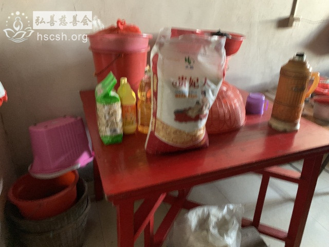 慰问物资:10kg贵夫人大米1袋、1.8l金龙鱼油1瓶、红萝卜面1袋、洗洁精1支