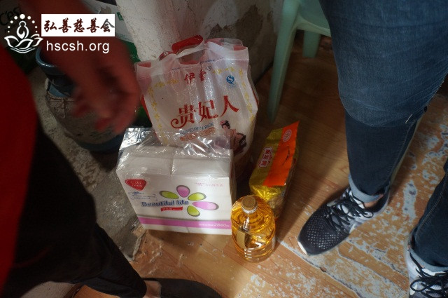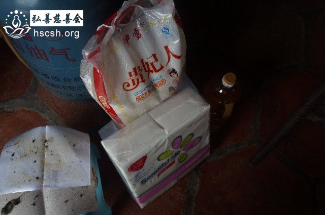 慰问物资:10kg贵夫人大米1袋、1.8l金龙鱼玉米胚芽油1瓶 、红萝卜面1袋、好生活面巾纸1提