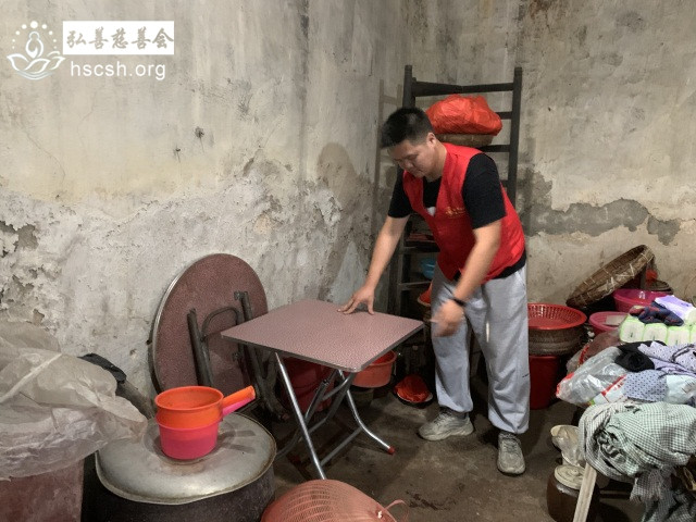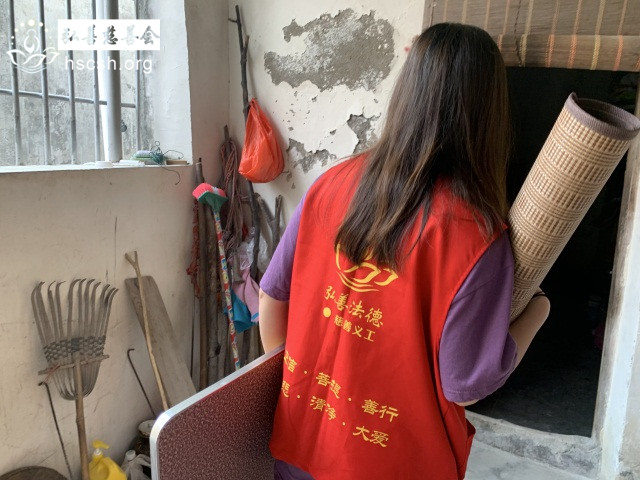 近期慈善会在走访贫困家庭过程中看到高龄独居老人辛某家中环境非常脏乱,经老人同意后,在本月13号慈善会组织了义工7人到老人家中为打扫卫生。经两个多小时便将例外打扫清洗干净,为老人清理掉许多杂物。并为老人添置了小橱柜、小桌子和草席。