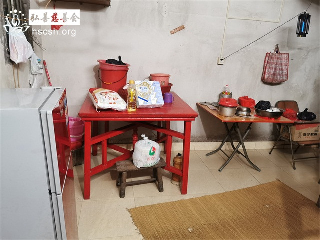 由于姚某英老人家的大儿子最近这几个月精神有点无常,对于义工们送来慰问物质有抵触心态,经过会里慎重考虑,考虑姚某英家境实在困难,现将慰问物质和慰问金放在当地居委会,然后由姚某英的女儿去领取并送去娘家。