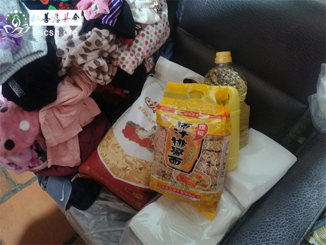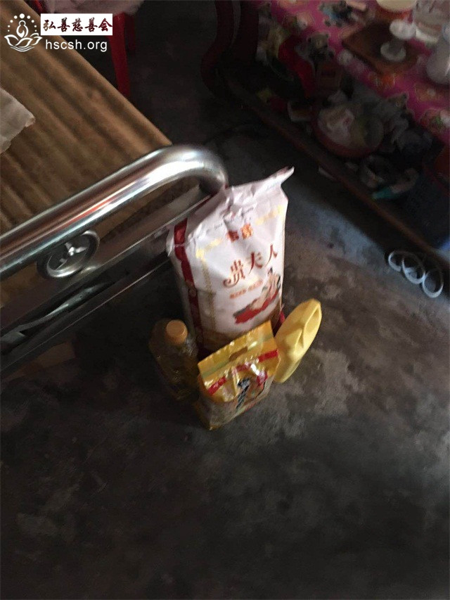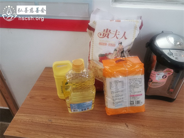 慰问物资:10kg贵夫人大米1袋、1.8l多力油1瓶、红萝卜面1袋、洗洁精1支