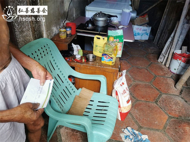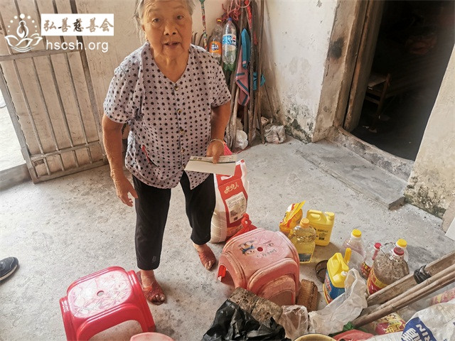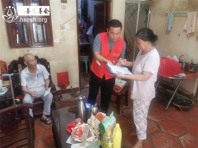 由于姚某英老人家的大儿子最近这几个月精神有点无常,对于义工们送来慰问物质有抵触心态,经过会里慎重考虑,考虑姚某英家境实在困难,现将慰问物质和慰问金放在当地居委会,然后由姚某英的女儿去领取并送去娘家。