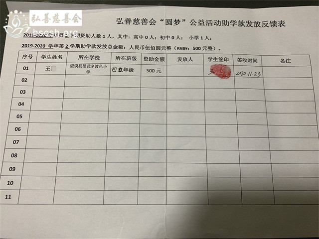 再次感恩爱心人士的捐助,让孩子们能够顺利、安心求学。慈善会义工将持续关注贫困山区孩子们的就学情况,愿有更多爱心人士加入我们,帮助更多孩子。明年我们将准备到新疆去了解贫困家庭的孩子就学情况,请继续关注......