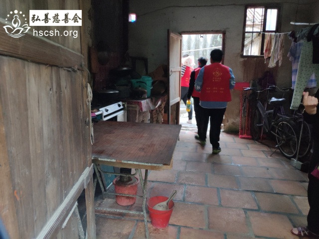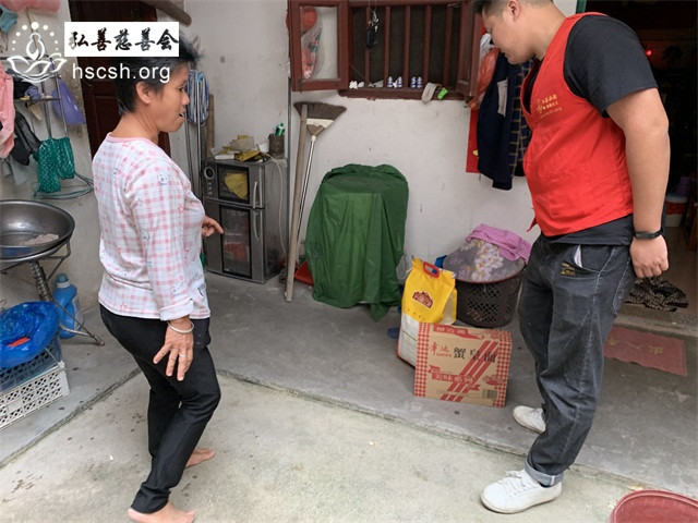 姚某英老人家的大儿子最近这几个月精神有点无常,对于义工们送来慰问物质有抵触心态,经过会里慎重考虑,考虑姚某英家境实在困难,现将慰问物质和慰问金放在当地居委会,然后由姚某英的女儿去领取并送去娘家。
