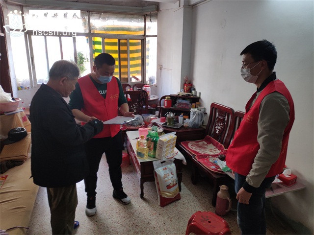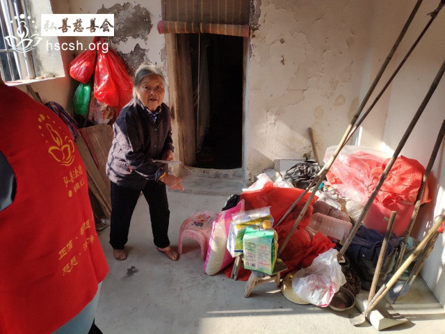 姚某英老人家的大儿子最近这几个月精神有点无常,对于义工们送来慰问物质有抵触心态,经过会里慎重考虑,考虑姚某英家境实在困难,现将慰问物质和慰问金放在当地居委会,然后由姚某英的女儿去领取并送去娘家。