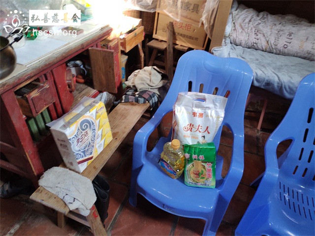 慰问物资:大米1袋、油1瓶、面巾纸1提、酱料菜1份、外套一件、裤子两条