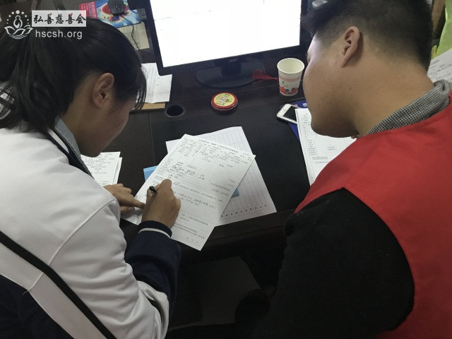 12月31日,义工们对走访资料进行整理筛选。