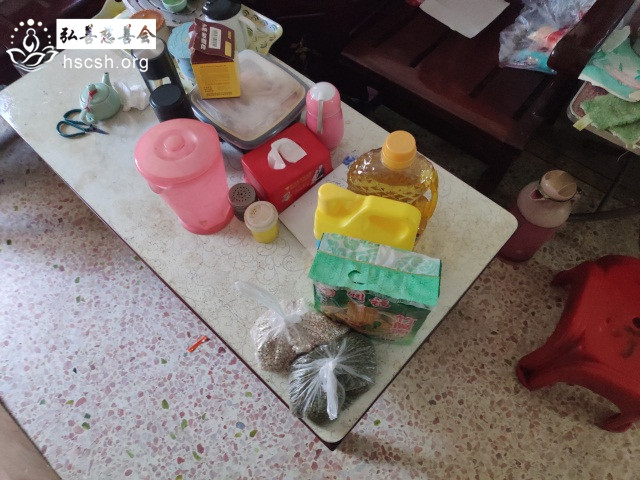 慰问物资:大米1袋、油1瓶、酱料菜1份、洗洁精1瓶、绿豆薏 米一份