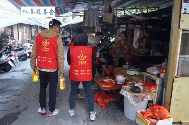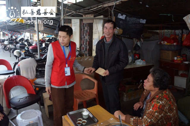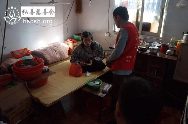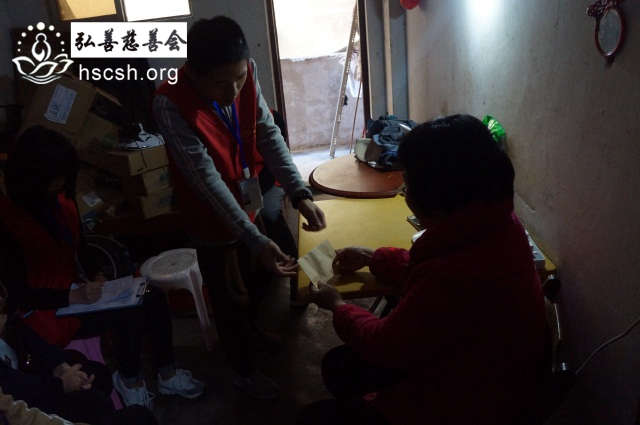 义工将救济金送到老人家手中