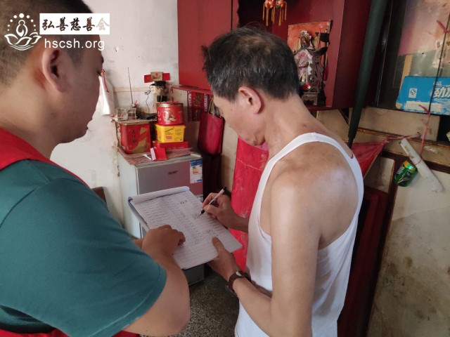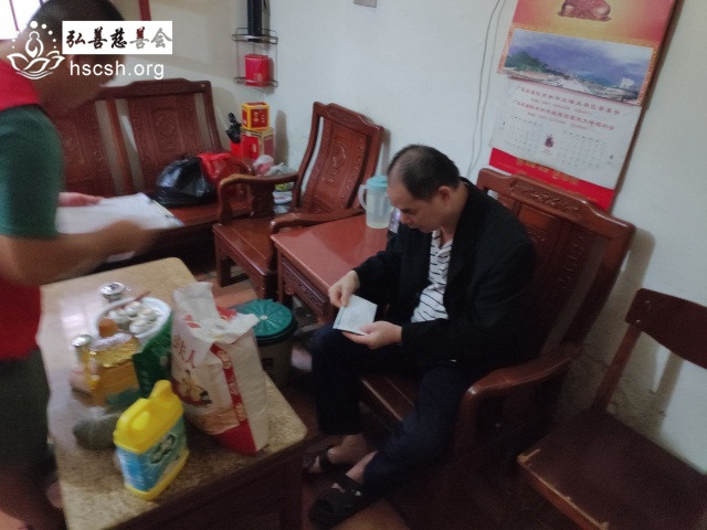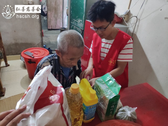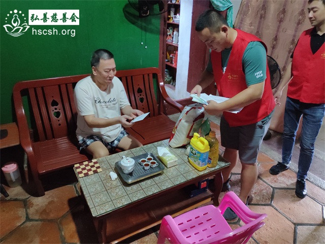 慰问物资:大米1袋、油1瓶、面1袋、洗洁精1支、薏米绿豆一份