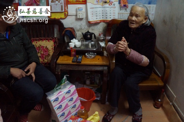 基本情况:老人现已接近90岁高龄,一人独居在祖业的老旧宅屋里,一日三餐需自己下厨,儿女由于生活条件不好,对老人的生活没能给予周到的照顾。
