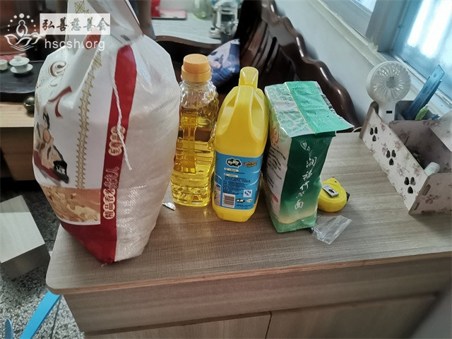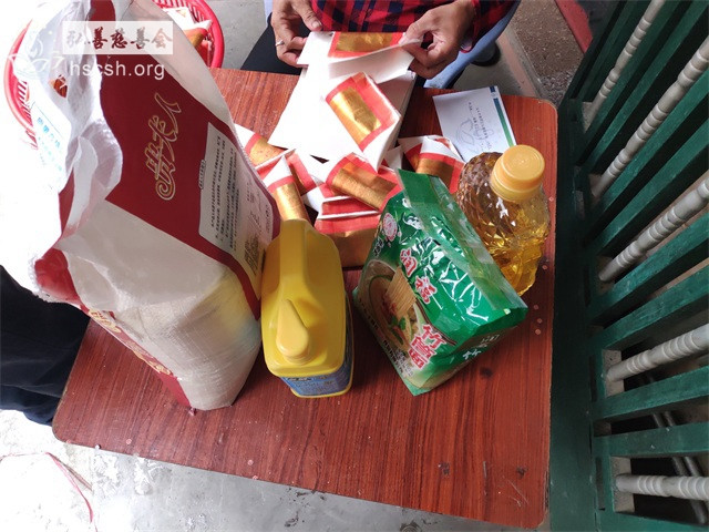 慰问物资:大米1袋、油1瓶、酱料菜1份、洗洁精1瓶