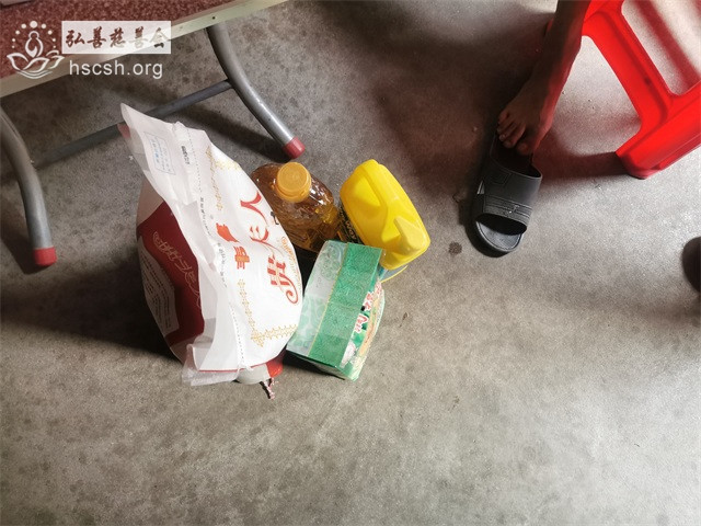 慰问物资:大米1袋、油1瓶、面1袋、洗洁精1支