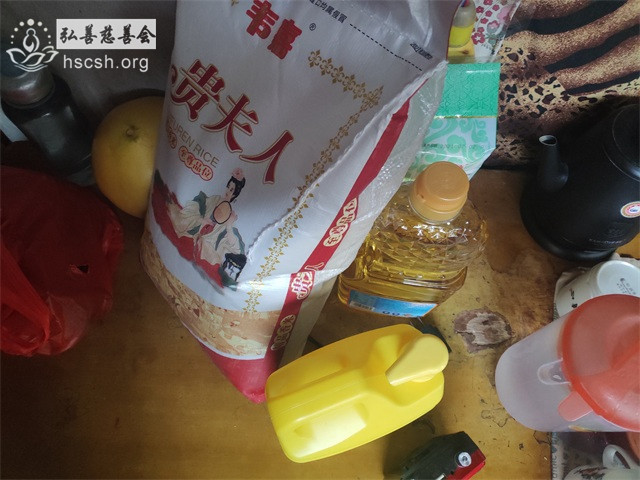 慰问物资:大米1袋、油1瓶、面1袋、洗洁精1瓶、洗衣粉1袋、麦片1罐