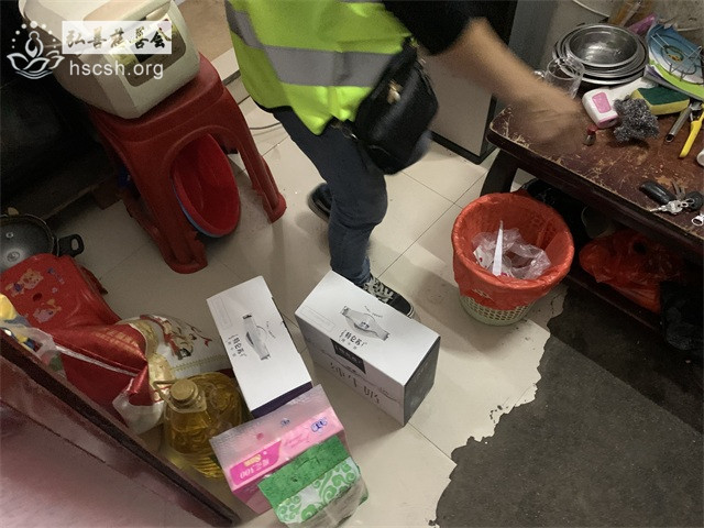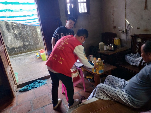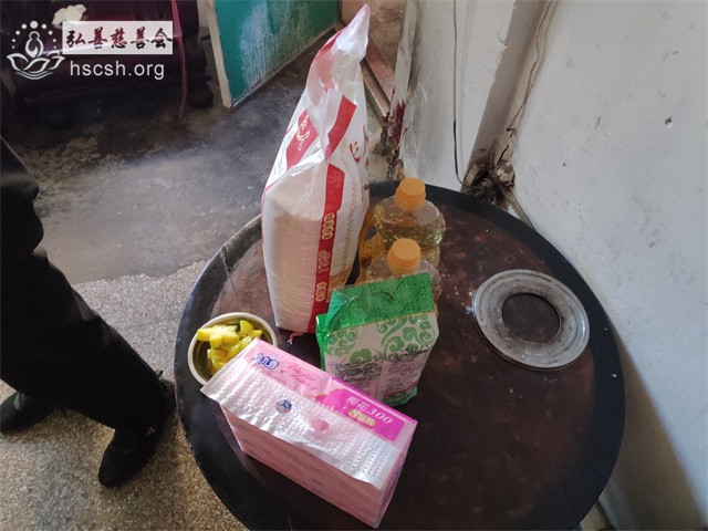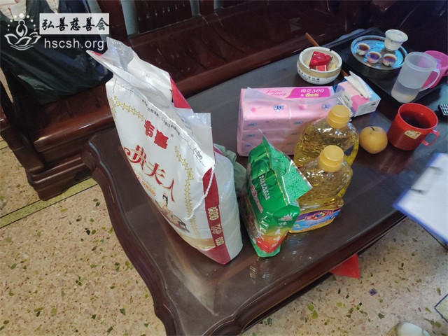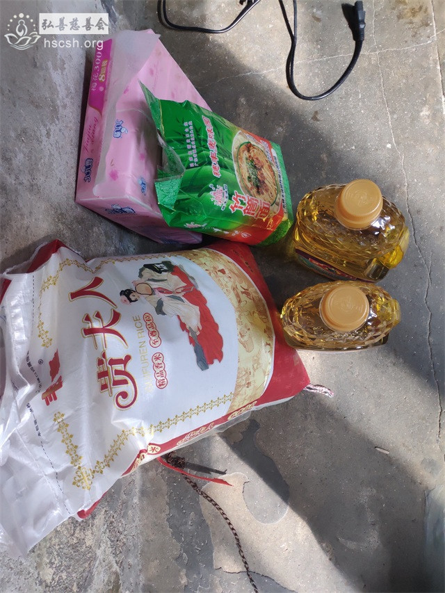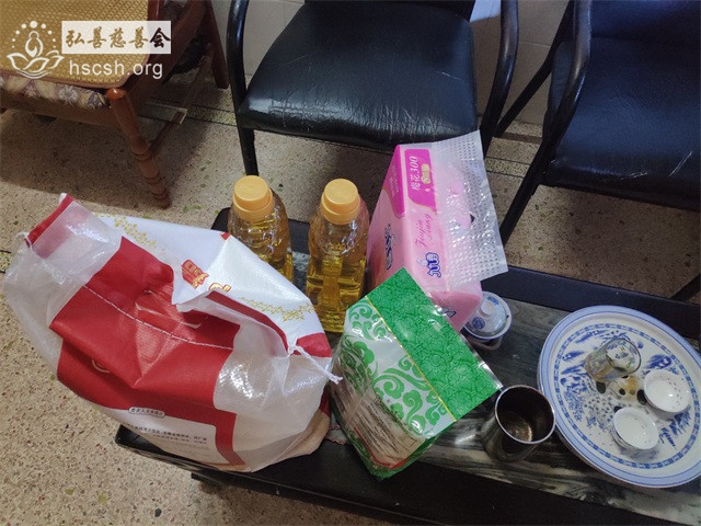 慰问物资:大米1袋、油2瓶、酱料菜1份、面巾纸1提