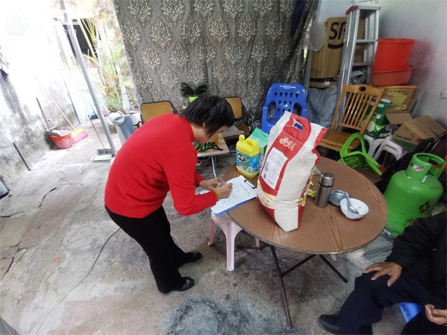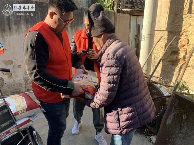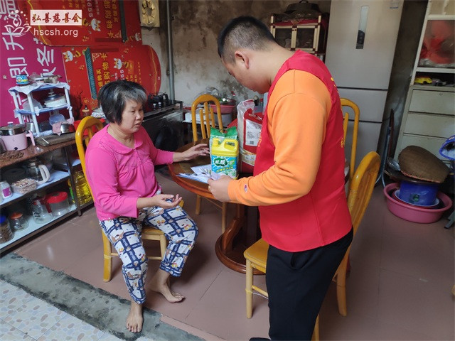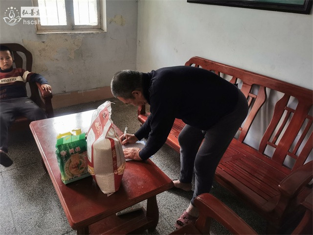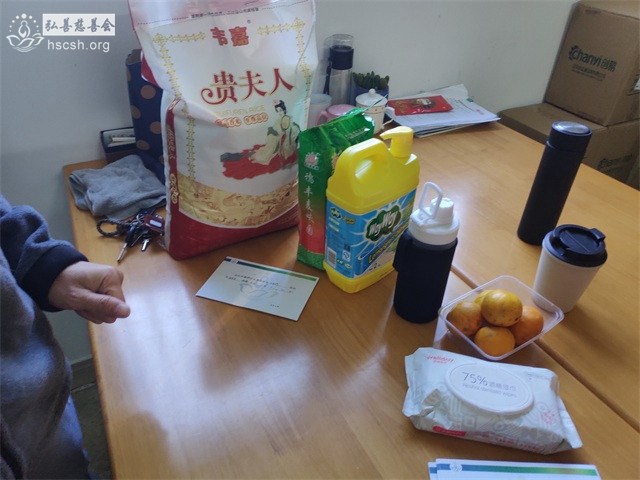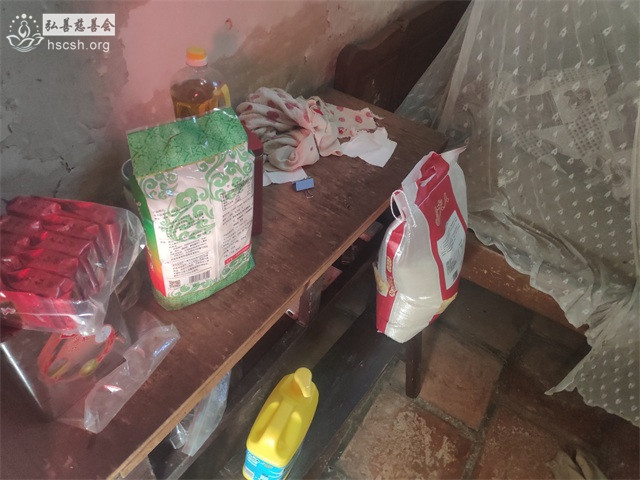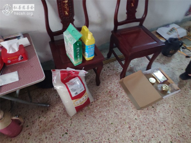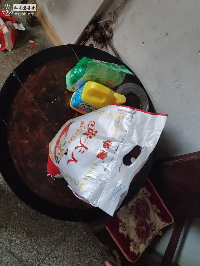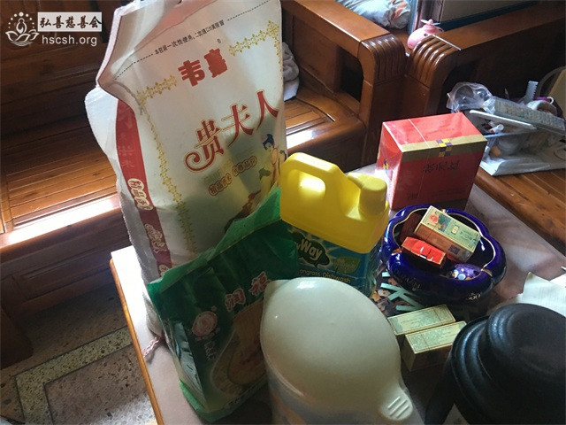 慰问物资:大米1袋、杂咸1份、洗洁精1支