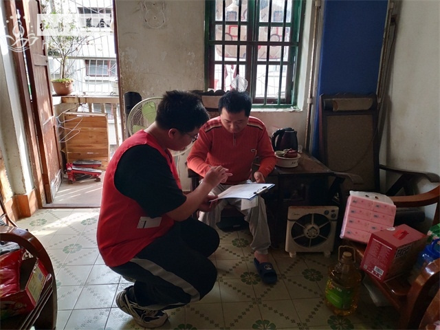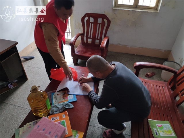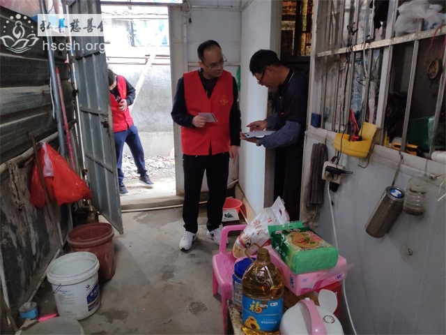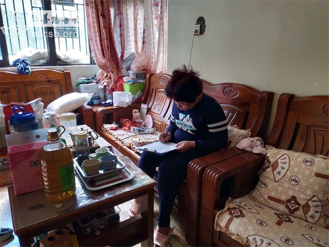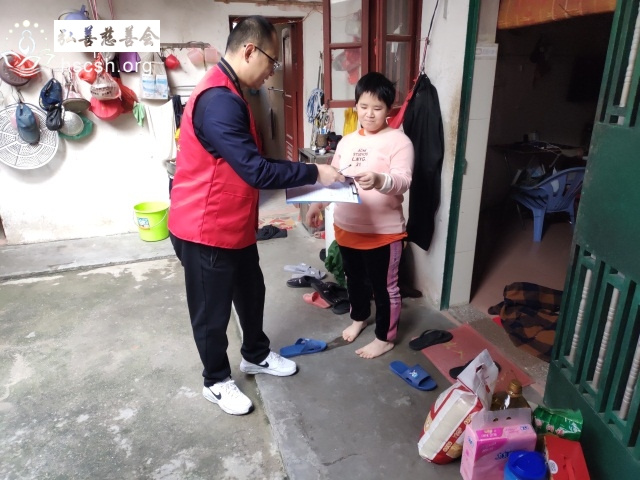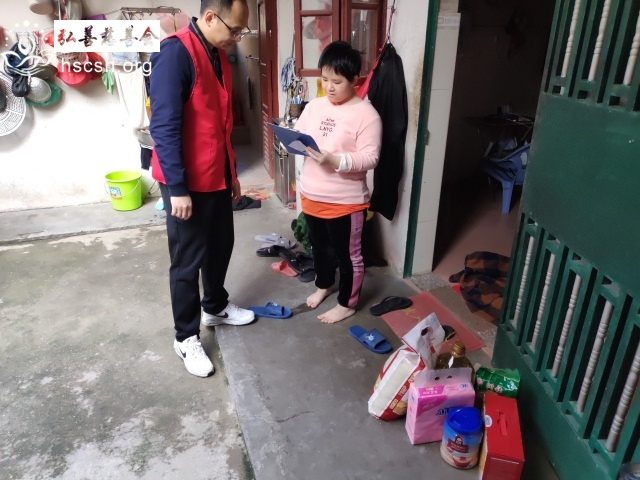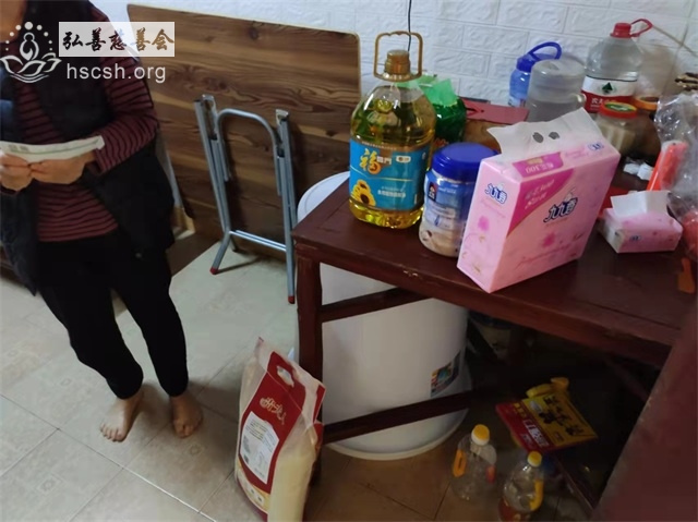 陈某文的老婆精神疾病发作,所以只能锁在家中,义工只能把物资递进给孩子。