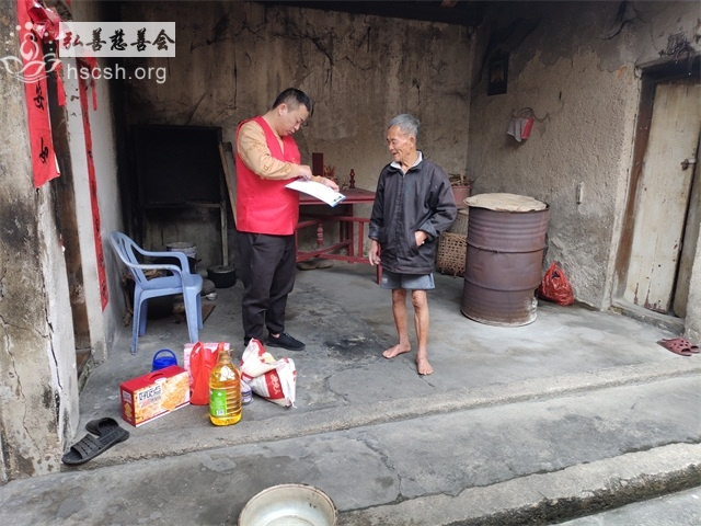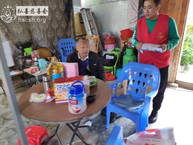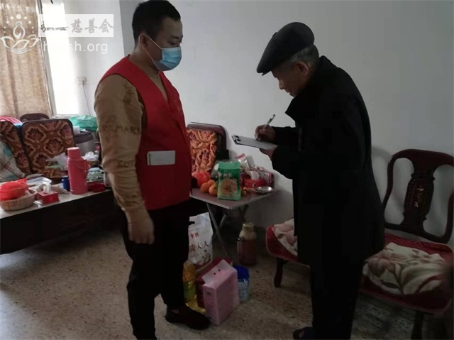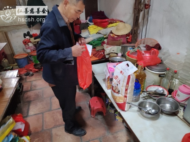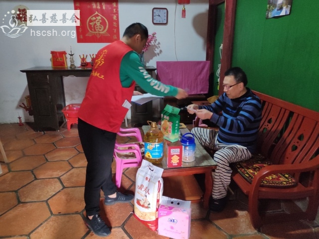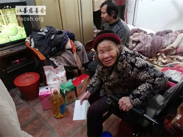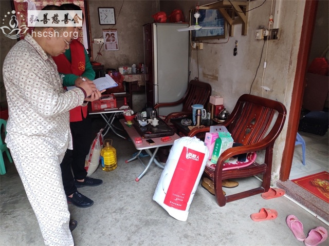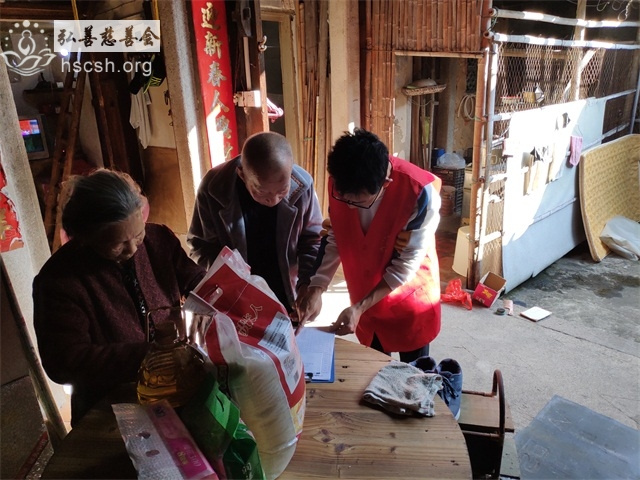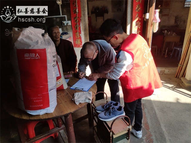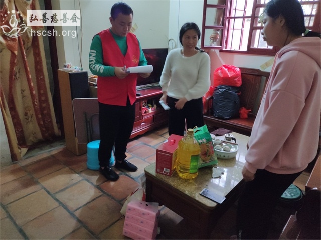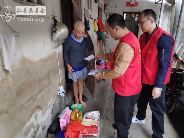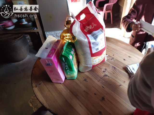 慰问物资:大米1袋、杂咸1份、油1桶、面巾纸1提、新春礼盒1份
