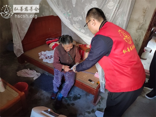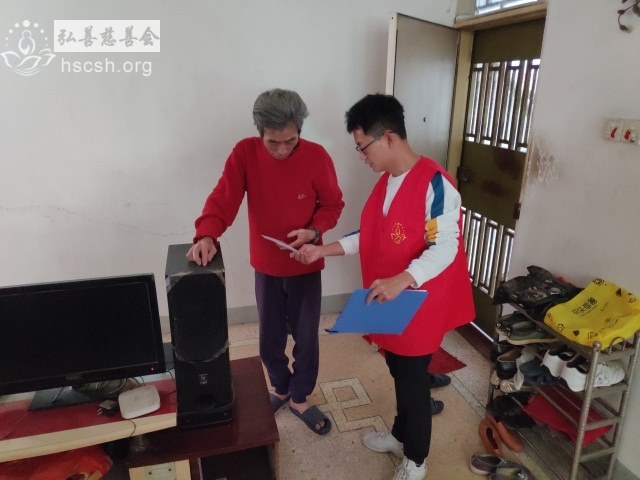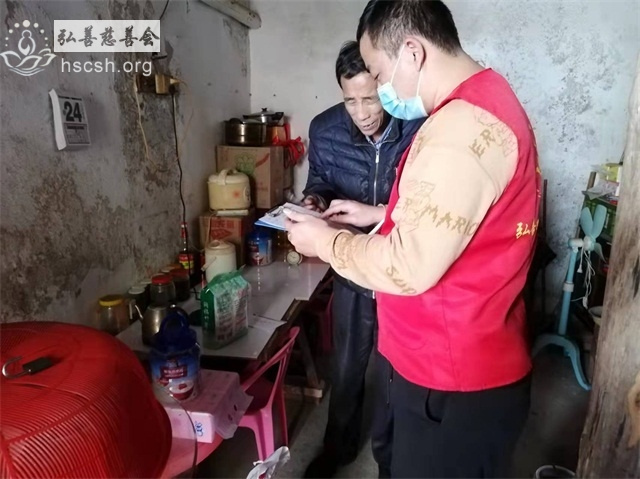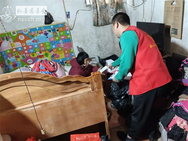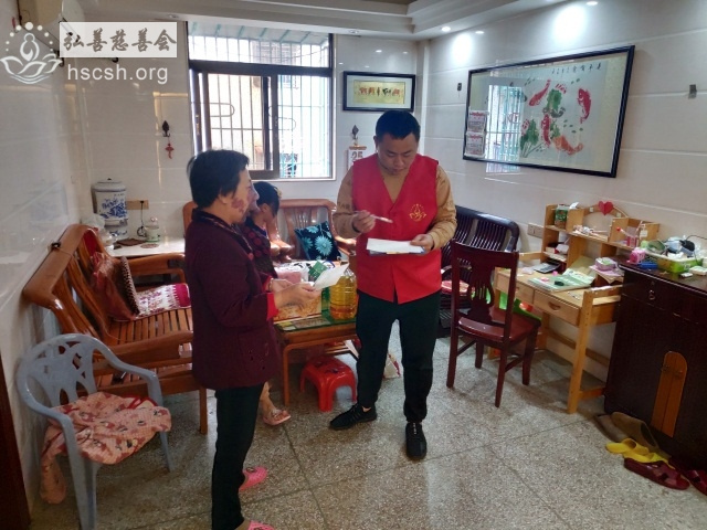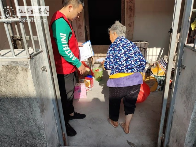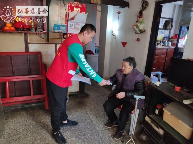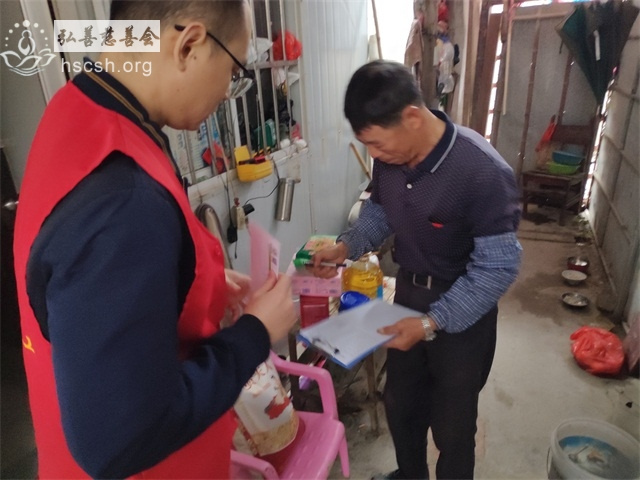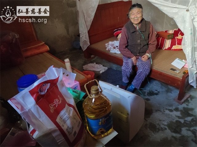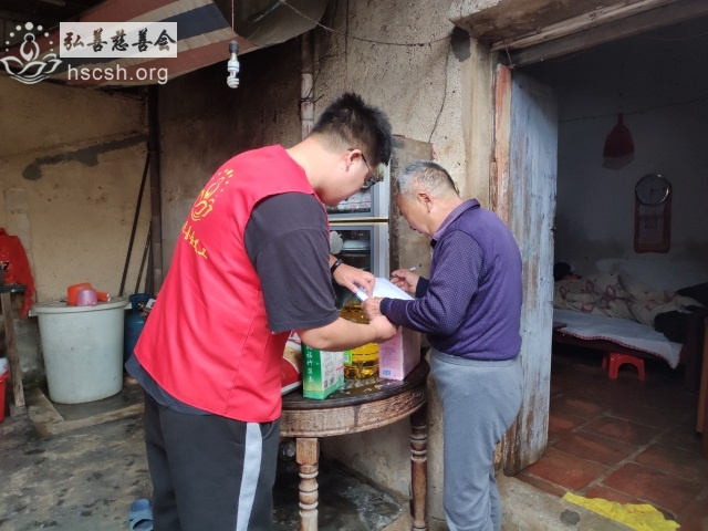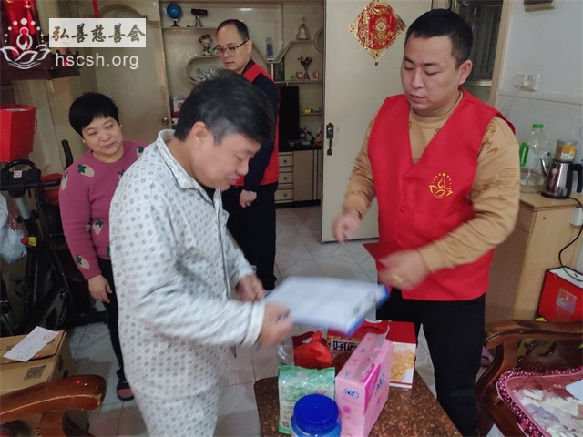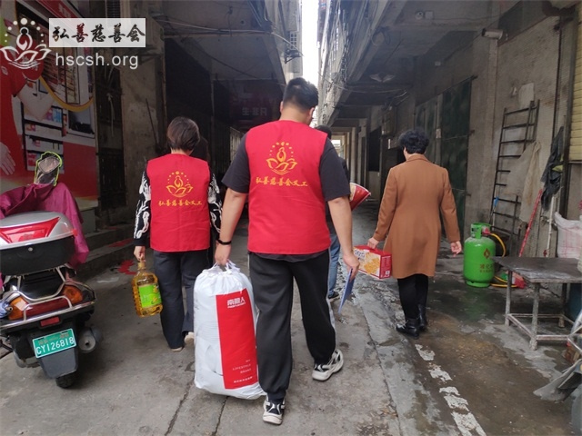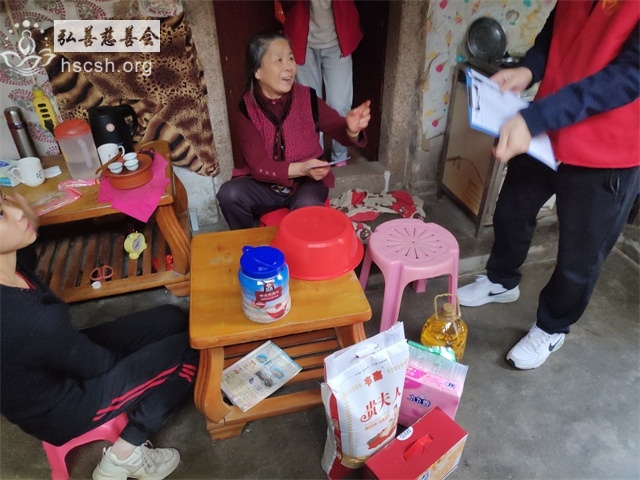 慰问物资:大米1袋、杂咸1份、油1桶、面巾纸1提、新春礼盒1份