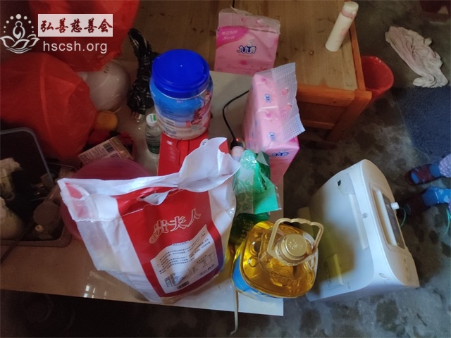 慰问物资:大米1袋、油1桶、面1袋、面巾纸1提、棉被1套