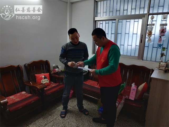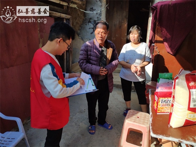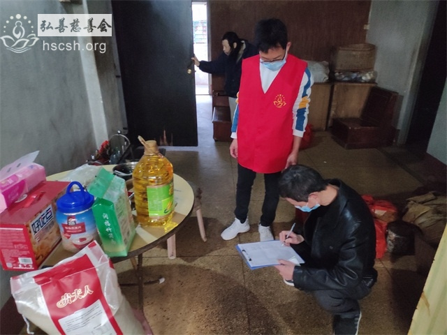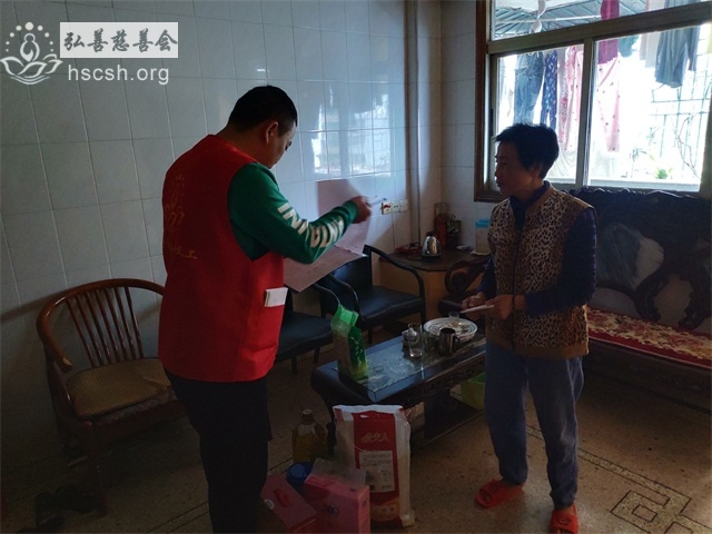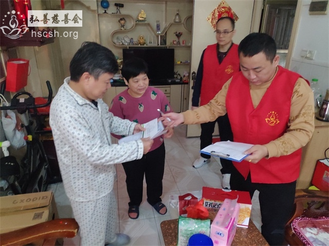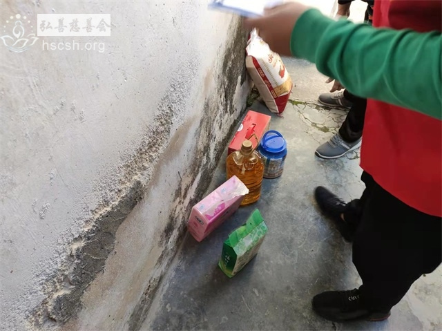 慰问物资:大米1袋、油1桶、面1袋、面巾纸1提、新春礼盒1份