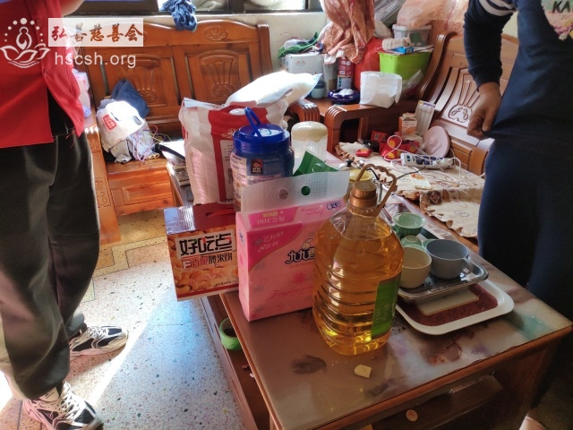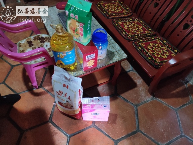 慰问物资:大米1袋、油1桶、面1袋、面巾纸1提、牛奶2箱