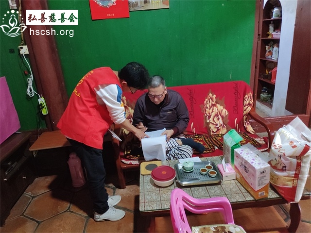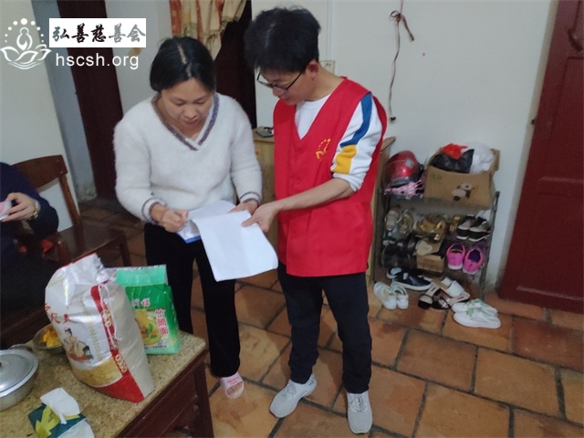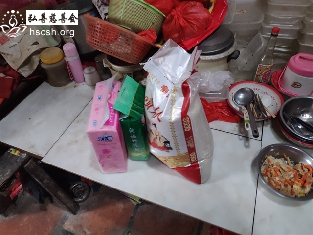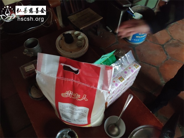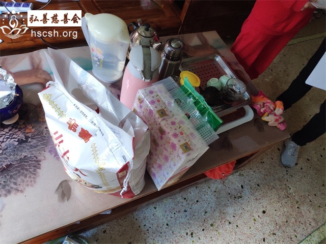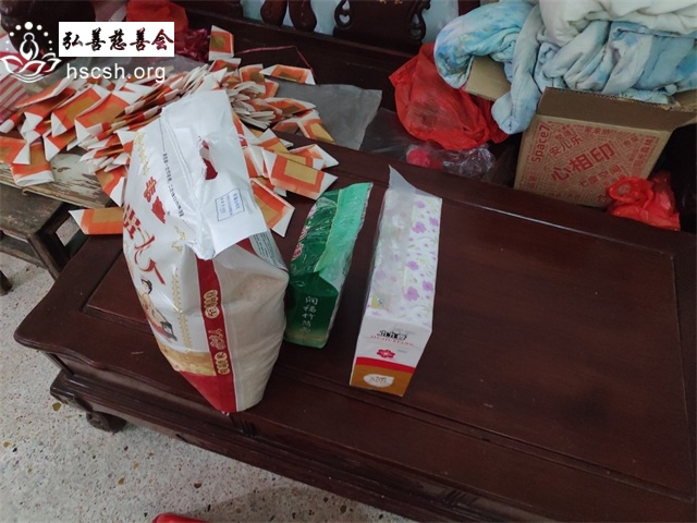 慰问物资:大米1袋、杂咸1份、面巾纸1提