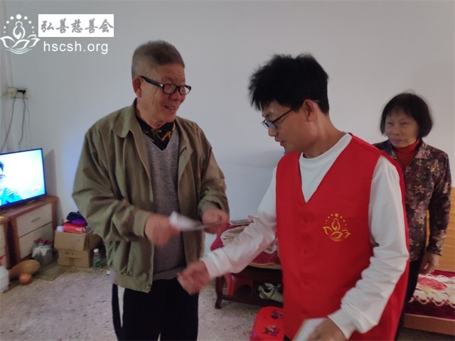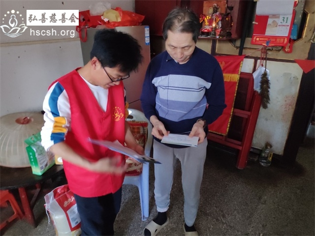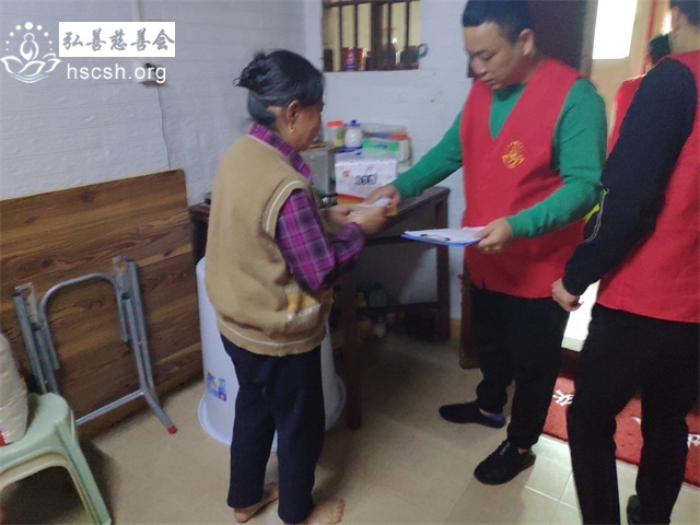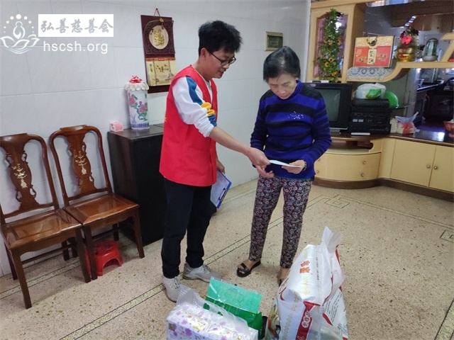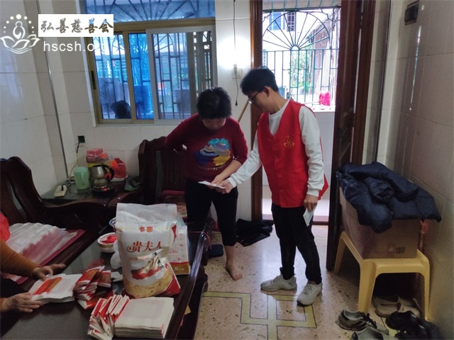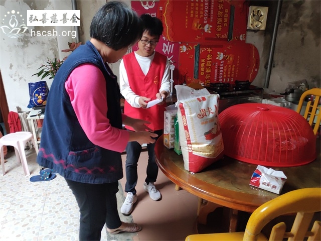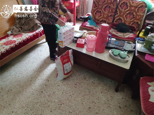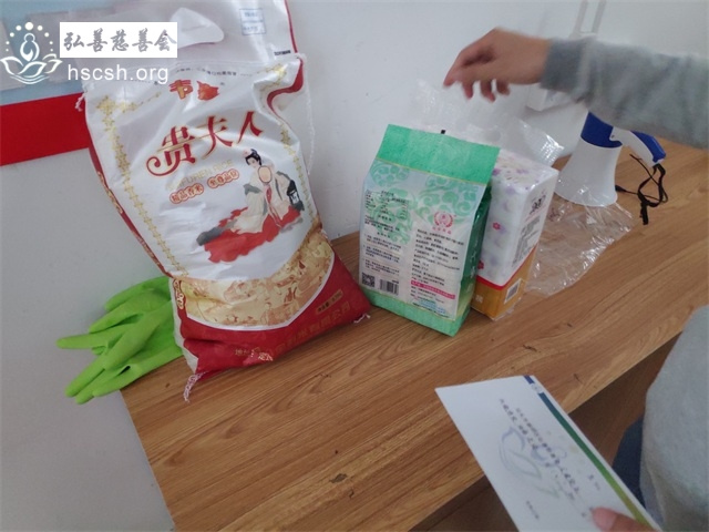 慰问物资:大米1袋、面1袋、面巾纸1提