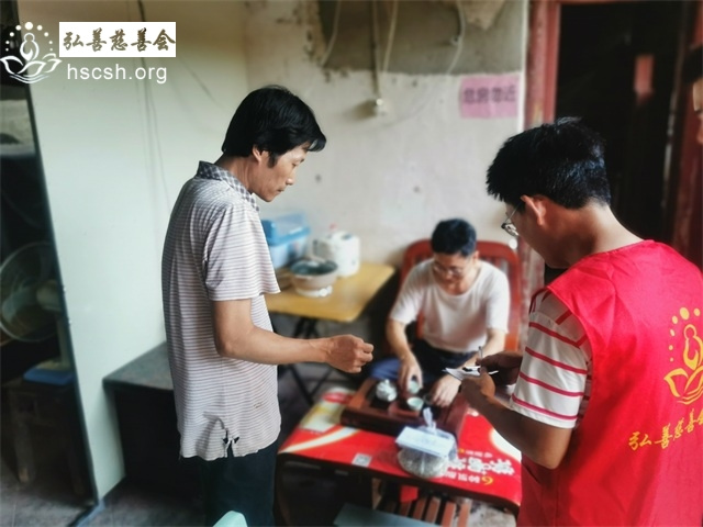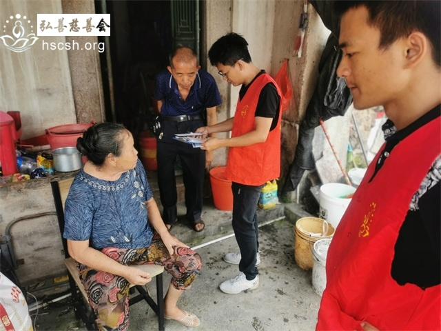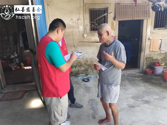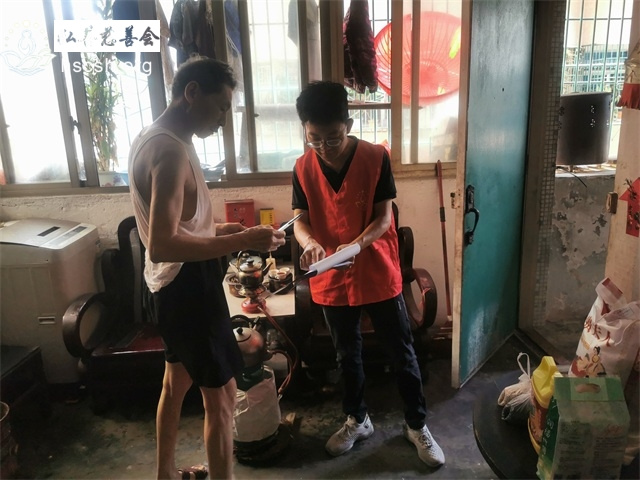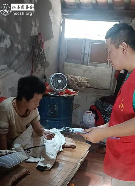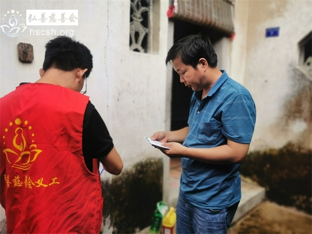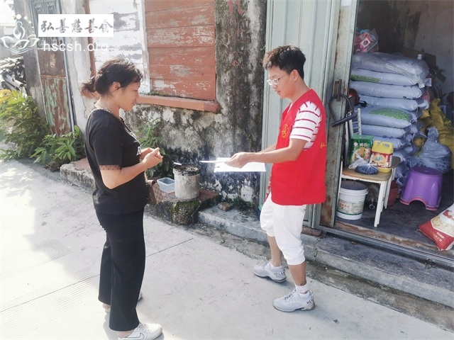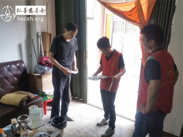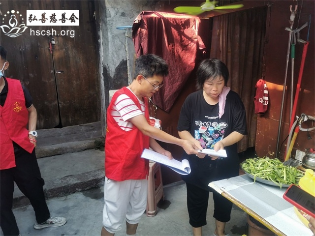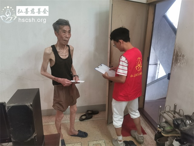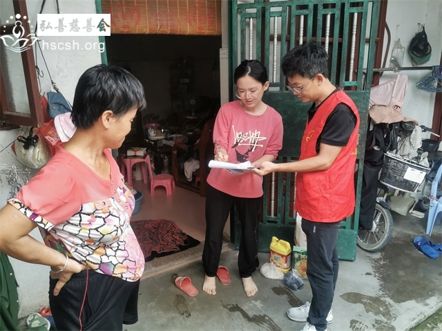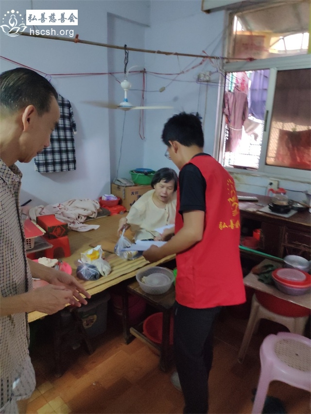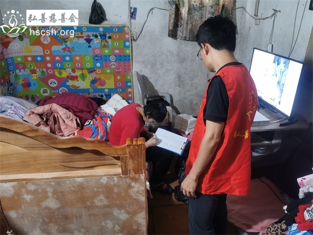 爱心义工去她家中,发觉无人在家,通过电话联系后,将物资放在家门口。