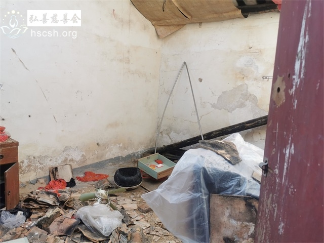 由于最近一连续的暴雨,导致家中一间房子坍塌。