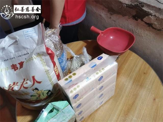 慰问物资:大米1袋、油1瓶、面1袋、面巾纸1提、薏米1斤黑豆1斤