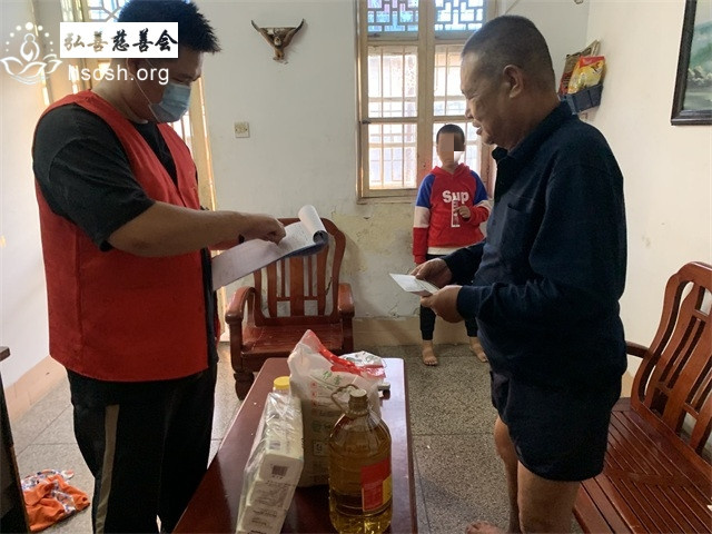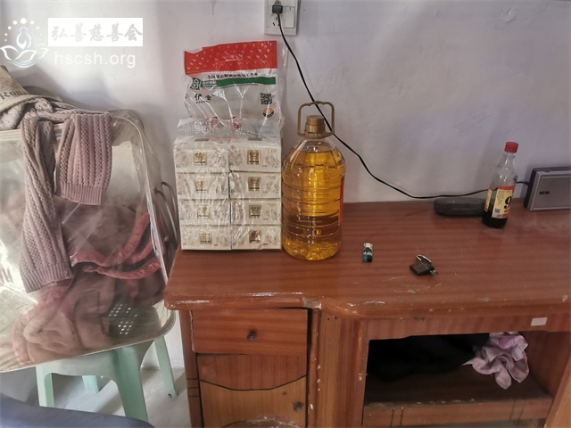 慰问物资:大米1袋、油1桶、面巾纸1提