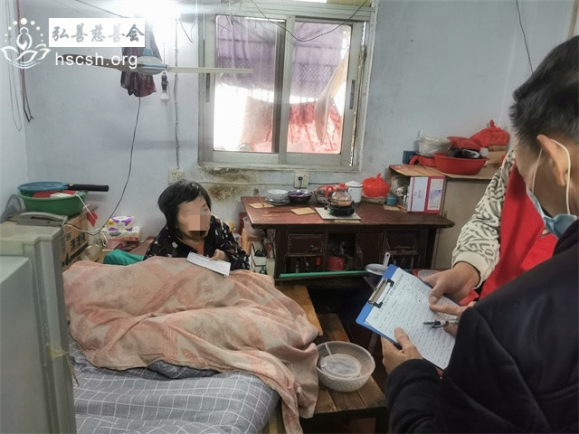 蔡某苗老人发烧不舒服,在床上睡觉。
