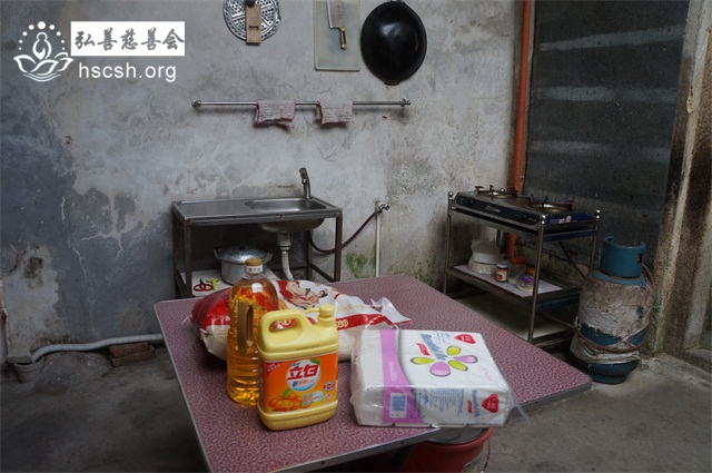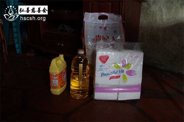 慰问物资:10kg贵夫人大米1袋、1.8l调和油1瓶、好生活面巾纸1提、立白洗洁精1瓶