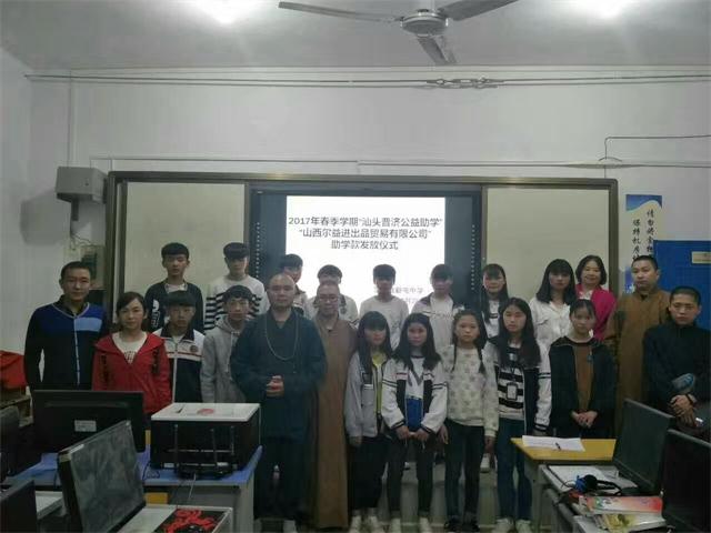 汕头普济公益助学简介:汕头普济公益助学是由慈悲的释智胜法师发起的主要对山区贫困学子提供帮助的公益组织。发起之初,法师有感贵州望谟县境内经济发展落后,民众文化与知识差异大,教育水平偏低,整体生活贫苦,劳动力流失现象严重,而贫困又促使离婚现象多,又加上当地特殊地理与极端气候等原因产生各种自然灾害,这种种因缘使得空巢老人、单亲孩子、留守儿童以及孤儿问题十分严重。很多孩子在初中就开始辍学讨生计,而这种种因素影响无形中又导致这种贫苦往复循环。法师慈悲感念众生疾苦,遂大发愿心为苦难众生摆脱困境提供方便。在2012年起发起"普济公益助学"并引领一批善心人士为各方困难群体提供帮助。