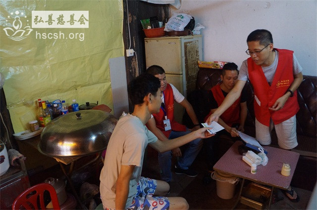 慰问物资:10kg贵夫人大米1袋、1.8l金龙鱼玉米胚芽油1瓶 、红萝卜面1袋、洗洁精1支、薏米绿豆1份