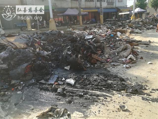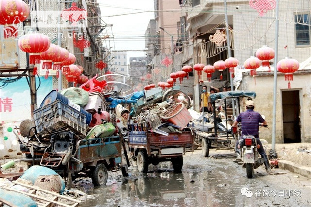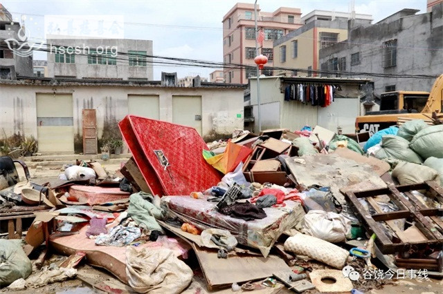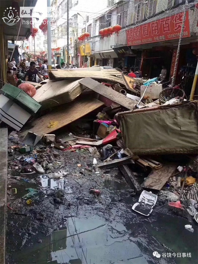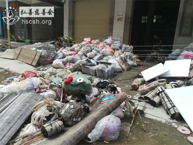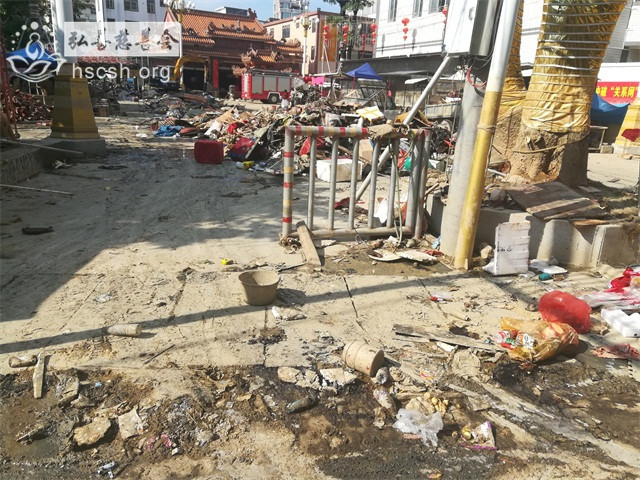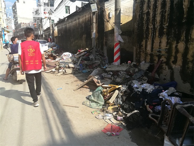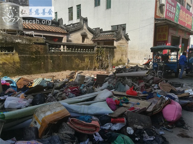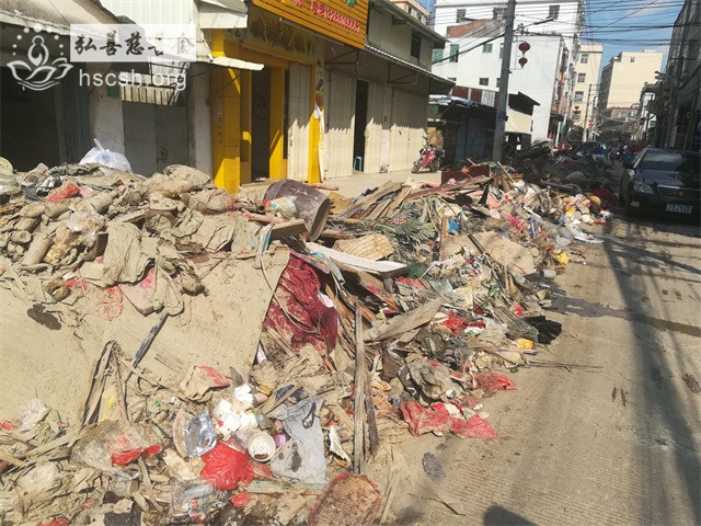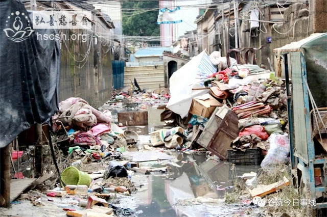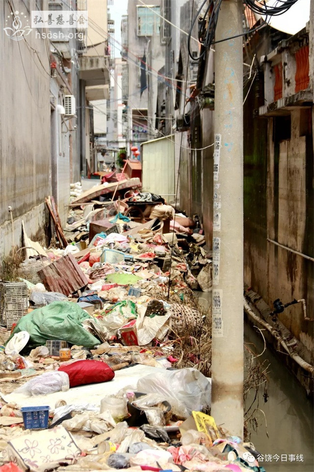 这是水刚退时的照片,恶臭阵阵,狼藉一片。