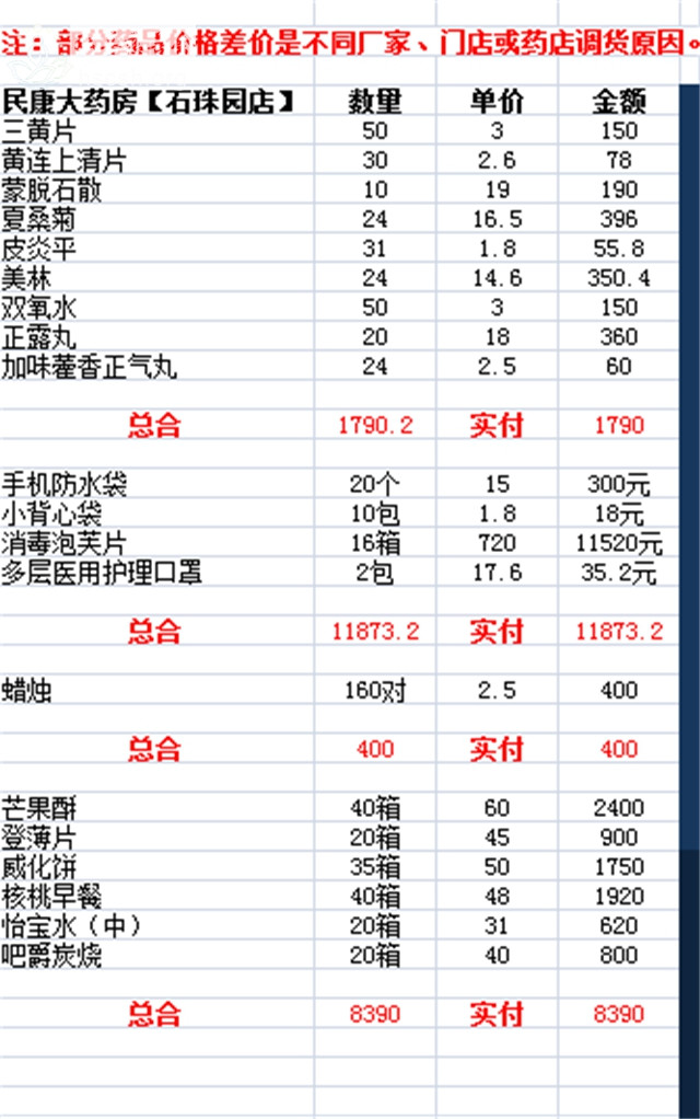 “凯德药店”石珠园爱心店家委托我们向灾区送些便药