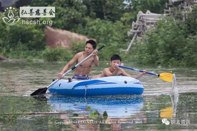 划舟深入灾区,来回要近2小时,体会在前线奋战的不易