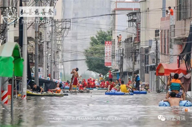自2018年8月29日起,汕头地区遭遇暴雨到特大暴雨袭击,当地气象部门高挂暴雨红色预警信号。受暴雨、潮汐影响,海水倒流顶托,普宁等练江上游地区同时出现强降水等多个原因,潮阳、潮南境内各江河、山塘、水库水位不断上涨,练江、陈店截流等多条河流出现洪水漫过堤防现象。致使潮阳、潮南部分地区多日内涝灾况严重,一些地区内涝水深达3米多,出现道路被淹,房屋进水,同胞受浸被困,物资食品药品缺乏,城市变成泽国,灾民困孤岛的状况。据汕头应急办截至9月2日通报,潮阳区13个镇街道受灾,受灾人口39.47万人;潮南区10个镇街道受灾,受灾人口50.73万人。给当地工农业生产、同胞生活和交通运输等带来了极大的破坏。受灾地区也多日出现断电、断水、断粮的紧急情况,灾情严重牵动着无数人的心。