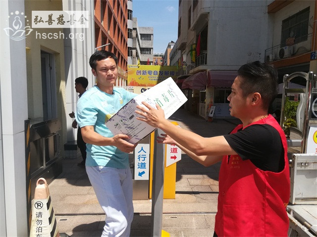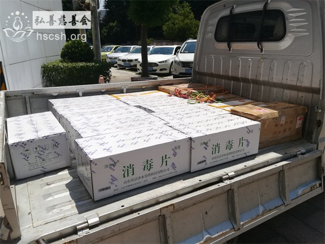 去往金灶输送救灾物资的义工,绕道来载消毒片