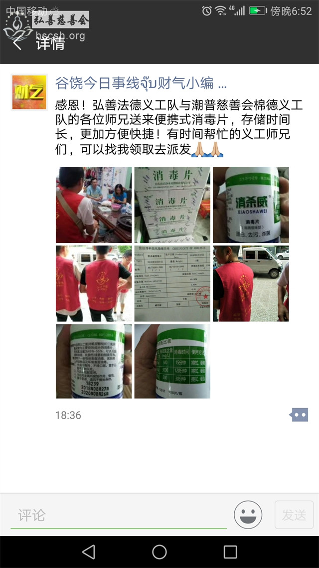 9月10日,义工们联系了谷饶今日事线公众号的泽鑫以及张璇,将消杀威消毒片11箱(100瓶/箱)移交由两位工作人员分发给灾区同胞。另5箱消毒片,2箱用于潮阳口美社区消毒,3箱则送到金灶镇分发给有需要的受灾同胞。