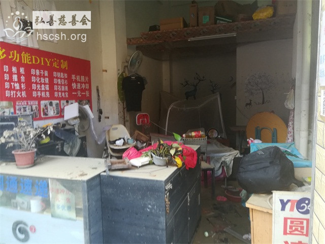 抵达谷饶张某的店里,消毒片将在这里分发给灾区同胞