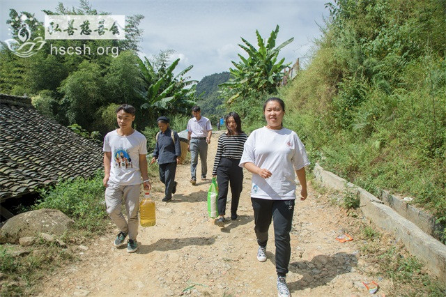 慰问物资:20kg大米一袋、5L香满园食用油一瓶;