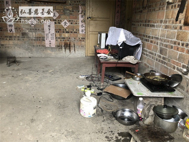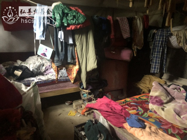 由于砖瓦房前木棚因危房性质,出于安全考虑自己拆除,目前杂物未清理,砖瓦房无法居住,国庆孩子返家只能暂住邻居家。